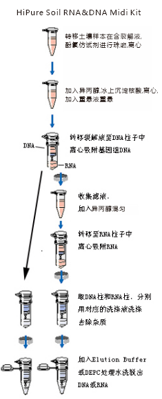 | 主要作用 | 从不超过3~5g土壤、底泥、水体滤膜、发酵液残渣等环境样本中提取微生物RNA和总DNA |