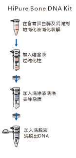 | 本试剂盒采用玻纤滤膜纯化技术,只需进行简单的结合-洗涤-洗脱的步骤。将骨头样品研磨成骨粉后,加入含DTT和蛋白酶K的试剂进行消化,DNA从胞内释放出来,加入变性液和乙醇调整最佳的结合条件后转移至纯化柱中并离心,DNA被选择性地结合到滤膜,而蛋白质等杂质则滤出到滤液中。经过三个洗涤步骤除去了残留的污染物和酶抑制剂,最后DNA被少量的水或缓冲液洗脱出来。 | |