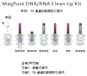 | 本试剂盒采用磁珠法纯化技术,只需进行简单的结合-洗涤-洗脱的步骤。转移含目的DNA片段的样品于离心管,加入溶胶液加热溶解后转移至纯化柱中进行离心或抽滤,DNA吸附在磁珠上;杂质经过两次清洗被去除,最后用少量洗脱液或水洗脱出纯化的DNA。 | |