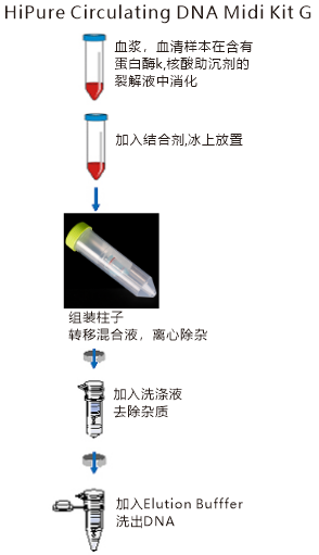 为尿液、腹水等低蛋白质含量样品的循环DNA提取提供了一个简单快速的解决方案。循环DNA是指游离在细胞外的DNA,它是细胞凋亡产生的。循环DNA片断一般在1KB以下。试剂盒基于硅胶柱纯化技术,提取过程中无需使用有毒的酚氯仿抽提,也无需进行耗时的醇类沉淀。得到的循环DNA可直接用于定量PCR,液相或固相芯片分析,杂交和SNP检测等分析。HiPure Circulating DNA Midi Kit C适合于从10ml尿液中捕获极微量的游离核酸。  |