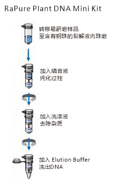 | 本试剂盒采用玻纤滤膜纯化技术,只需进行简单的结合-洗涤-洗脱的步骤。植物样品经物理方法研磨成粉未,加到含SDS和RNA酶试剂进行加温裂解,裂解液经高盐盐析沉淀多糖和蛋白质,离心得到澄清的裂解物,加入结合液调整最佳的结合条件后转移至纯化柱中并离心,DNA被选择性地结合到滤膜,而蛋白质等杂质由滤出到滤液中。经过两个洗涤步骤除去了残留的污染物和酶抑制剂,最后DNA被少量的水或缓冲液洗脱出来。 | |